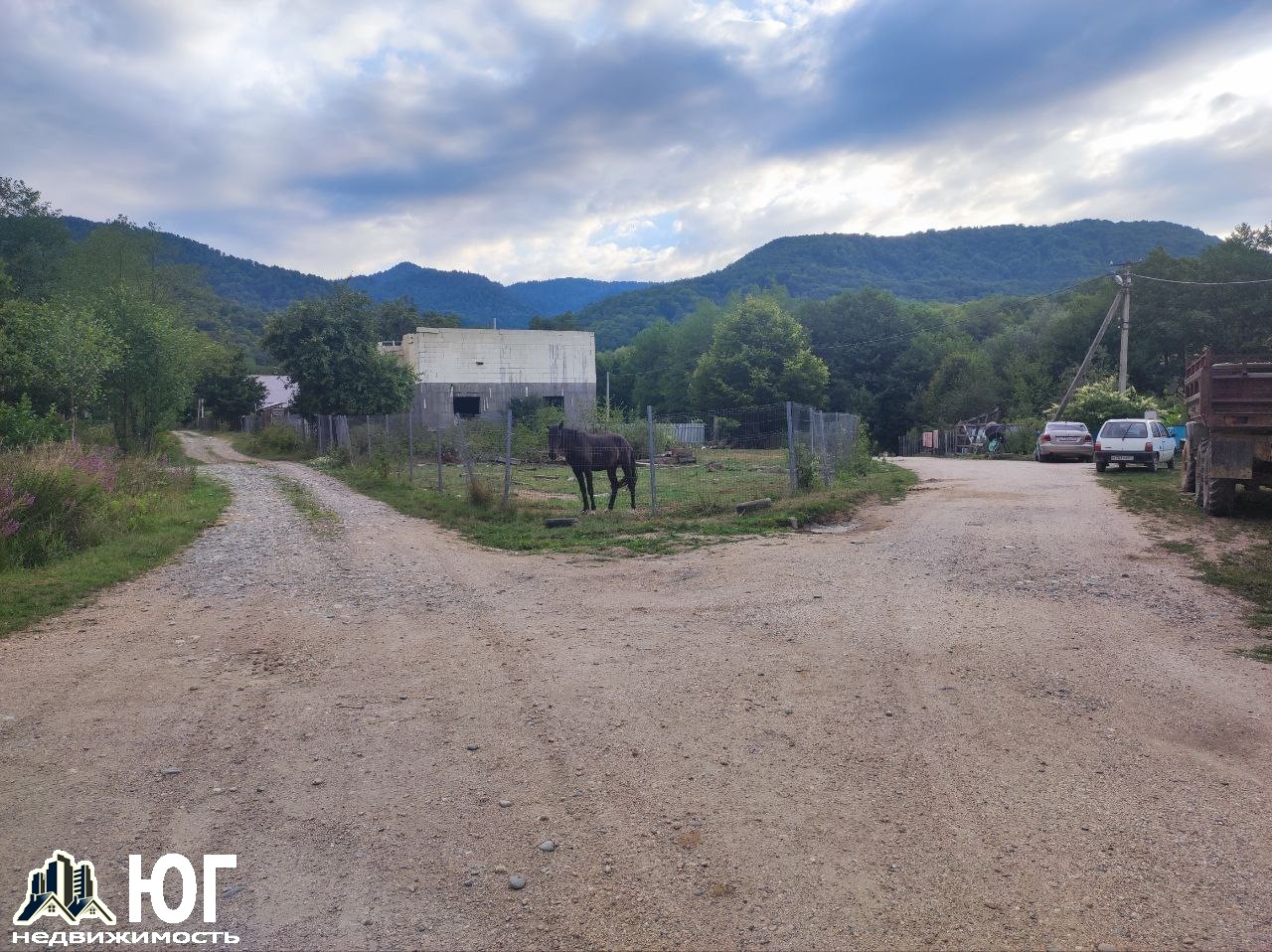 ФАСАД-44*40 м.Дорога к участку хорошая,широкая,грунтовая. Улица застраивается новыми домами. С участка хорошо видно горы.